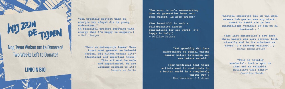 An update from Amsterdam! All four of us are currently in the city, and the energy is fantastic. We visited the impressive space at NDSM-fuse and are working together in the studio to further shape the plans for “Wij Zijn De Tijden”. It’s a special time where our two generations and four visions are literally coming together.