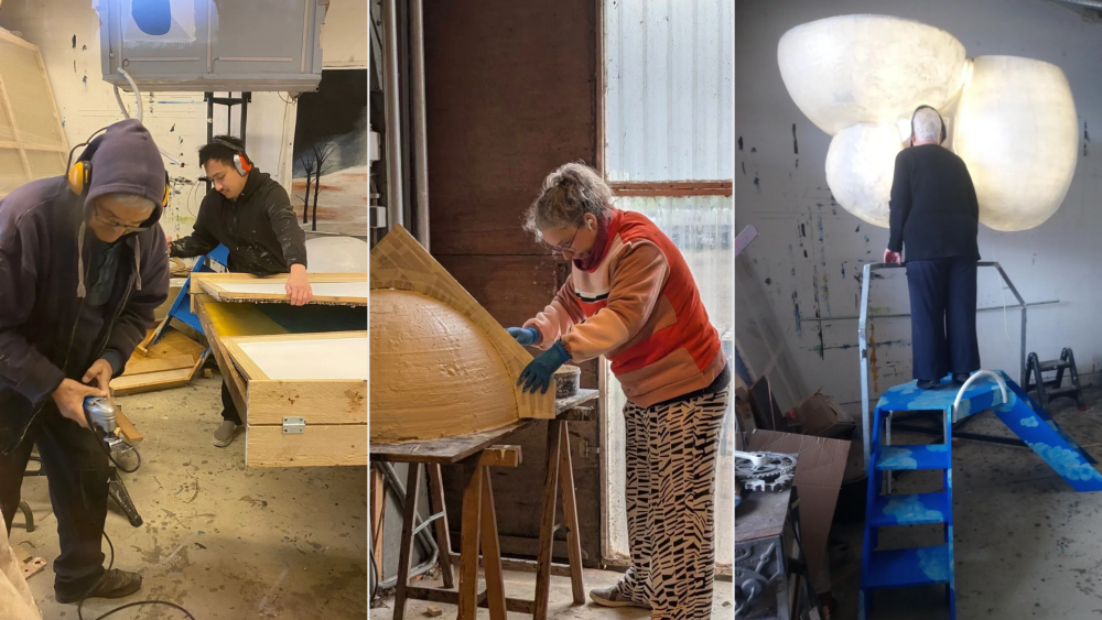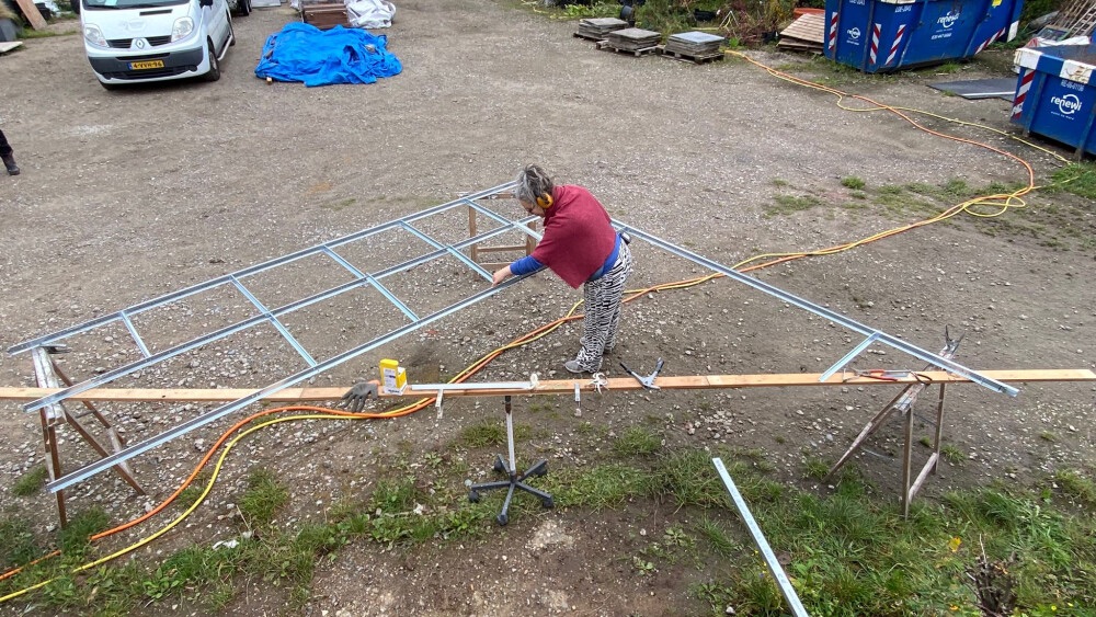 Anne and Jeffrey took over the AVWS studio for a week to build the base structures of their artworks with Alida and Winfried. Under Winfried’s expert guidance, the plans have now been developed into tangible physical forms. The atmosphere is fantastic. It’s a process of sharing, helping, and creating together, in which we receive fantastic construction force from friends and even some of you, our supporters. Your support is literally being transformed into the foundations of the exhibition.
