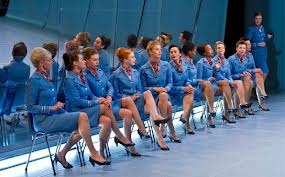Het stuk is van een locatie voorstelling omgebouwd naar een theater voorstelling waarin we het als publiek wel heel benauwd krijgen van het volle podium. De statische glimlachen, het geklak van hakken, het smetteloze uniform en de waterproof make-up beginnen hun glans te verliezen, terwijl de dames zich in de verschillende chaotische situaties proberen te handhaven.