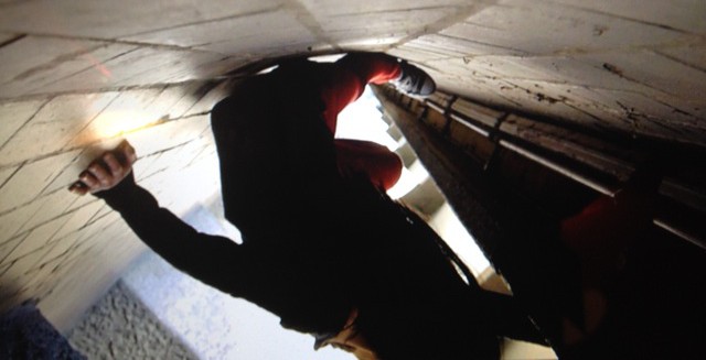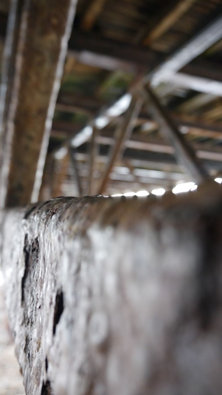 – When I was searching for sounds to record, I reviewed the perceptions I had that time during the filming at the location 3. The feeling of a long continuous pathway, and the feeling of looking down the hole, reminds me of a manhole on the street, where I decided to record the sound of the water, for example. The object’s presence is visually absent in the frame, however, it was present in my body. I think this searching for a sound that was present in my body (but not visually), and combining it with the visual, could expand the kinaesthetic experience for the audience.